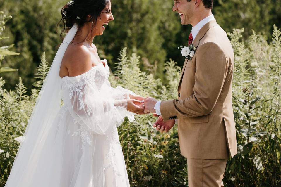 Say ‘I Do’ under our greenery entwined arch, at our breathtaking ceremony site overlooking the pond and rolling fields.