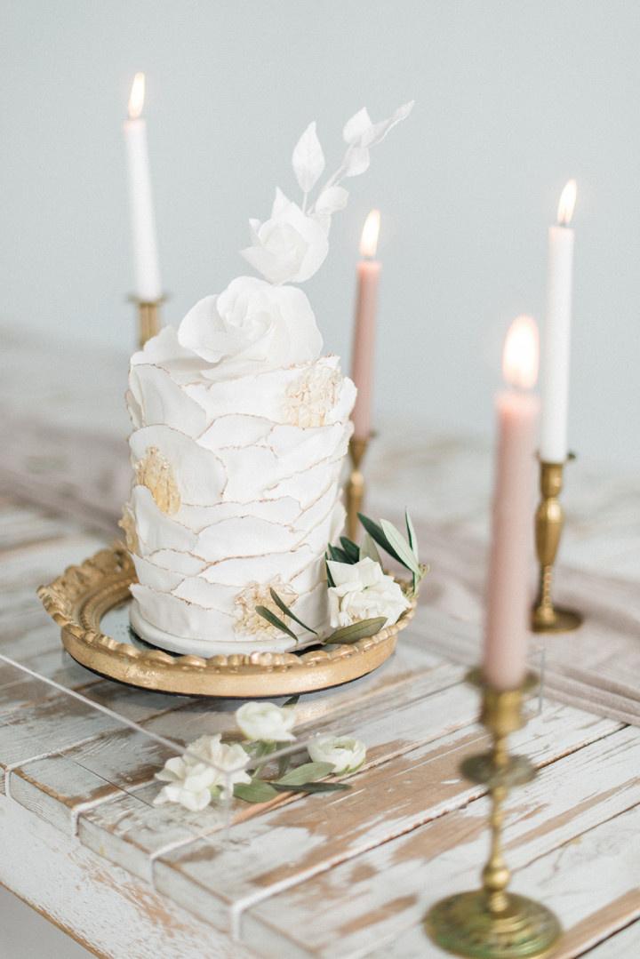 Classic and timeless, a palette of white, ivory, beige and gold is a versatile combination that will work well in any venue. This shoot illustrates how to put together a dreamy display using modern monochromatic elements, decorative gold antique accents and simple greenery. The result is a cohesive event design that oozes romance and style. From stylish stationery by LaFabère and designer decor featuring eclectic finds by Makin’ It Lovely to pretty pale pastel floral arrangements by Floralia and a stunning cake by OSSO Sweet, you’ll find inspiration for all the big day details.
